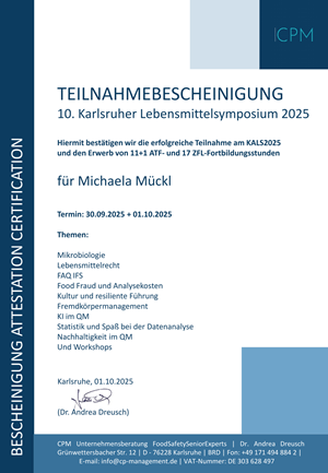 Mehr als 10 Jahre war ich als QM-Leiterin bei einem renommierten Hersteller für Backwaren sowie Produkten für Kleinkinder und Allergiker tätig. Dadurch bin ich mit allen Facetten des QM/QS-Bereiches vertraut, einschließlich der Qualitätssicherung von Eigenmarkenartikeln für Drogerie- und Supermarktketten.