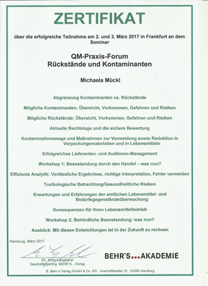 Mehr als 10 Jahre war ich als QM-Leiterin bei einem renommierten Hersteller für Backwaren sowie Produkten für Kleinkinder und Allergiker tätig. Dadurch bin ich mit allen Facetten des QM/QS-Bereiches vertraut, einschließlich der Qualitätssicherung von Eigenmarkenartikeln für Drogerie- und Supermarktketten.